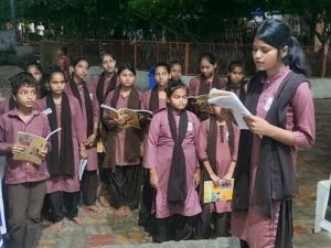 बाहर लगा स्ट्रीट लाइट जल उठता है। हम कांधे पर बस्ता लिए धीरे धीरे अपने घर की और लौटते इन बच्चों को निहार रहे हैं।