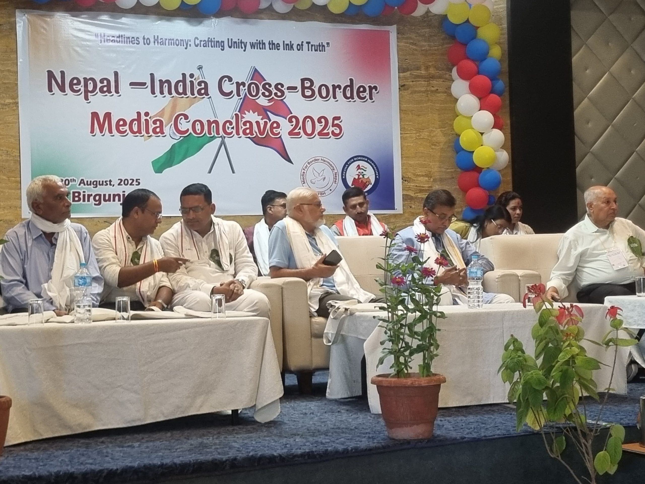 नेपाल के वीरगंज में भारत-नेपाल पत्रकार संगठन “मीडिया फॉर बॉर्डर हार्मोनी” के बैनर तले नेपाल-इंडिया क्रॉस बॉर्डर मीडिया कॉन्क्लेव-2025 का आयोजन किया गया। इस सम्मेलन में नेपाल और भारत के सैकड़ों पत्रकारों ने शिरकत करते हुए दोनों देशों के संबंध को मजबूत करने में मीडिया की भूमिका पर लंबी चर्चा की । भारत से उत्तराखंड, उत्तर प्रदेश, बिहार और झारखंड के कई वरिष्ठ पत्रकार शामिल हुए, वहीं नेपाल के विभिन्न प्रांतों से भी बड़ी संख्या में पत्रकार पहुंचे।